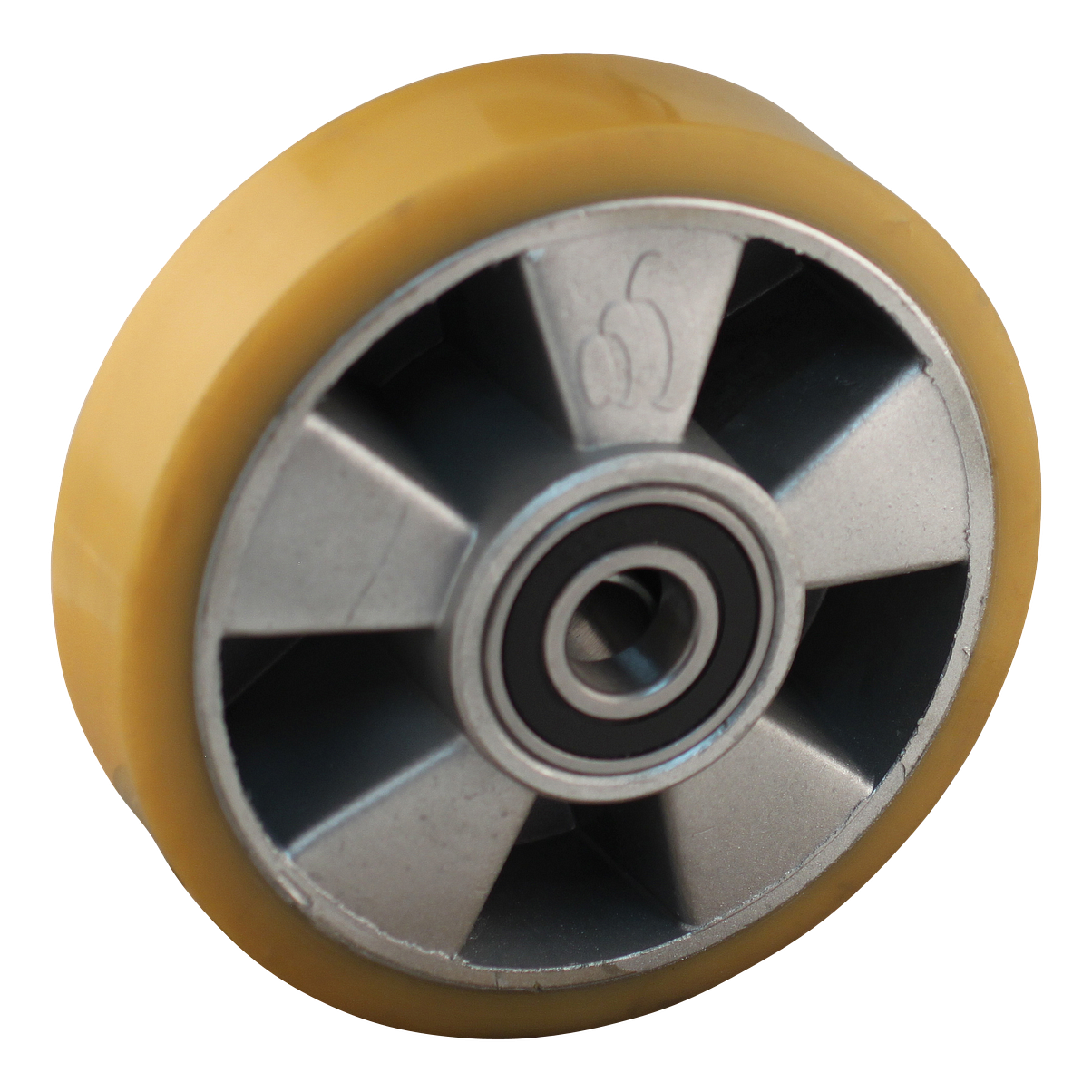 Aluminium wiel, 150mm diameter, PU loopvlak, kogellager