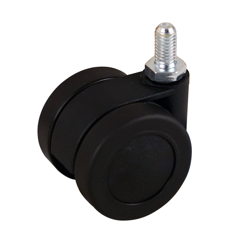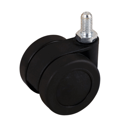 Dit zwenkwiel heeft een gaffel van kunststof. Deze kan worden bevestigd door middel van een draadstift. De bouwhoogte is 64 mm. Het materiaal van de velg is PA (zwart) en van het loopvlak PU (zwart van kleur). Het wiel heeft een diameter van 42 mm en een breedte van 43 mm. Het zwenkwiel heeft een draagvermogen van 50 kg. Het wiel is gelagerd met een glijlager. Merk: Maier.