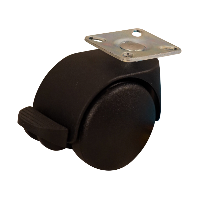Kunststof zwenkwiel, 50mm diameter, PP loopvlak, glijlager, wielrem