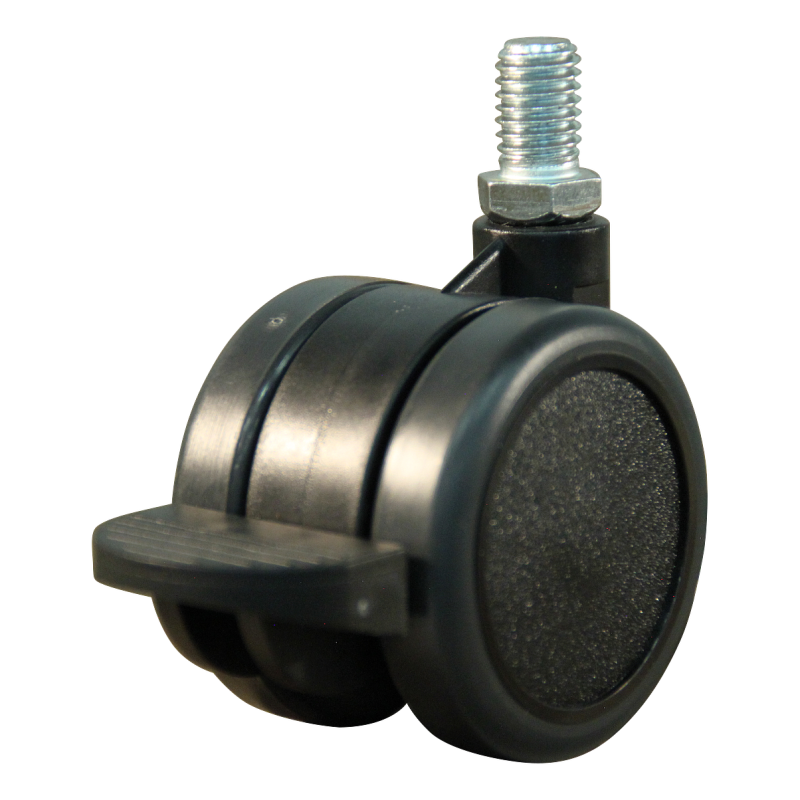 Dit is een zwenkwiel met een gaffel van kunststof. De rem is van het type wielrem. Deze kan worden bevestigd door middel van een draadstift. Het wiel heeft een bouwhoogte van 81 mm. De velg is gemaakt van PA (zwart) en het loopvlak is van PU (grijs van kleur). De diameter van het wiel is 50 mm en de breedte 43 mm. De draagkracht is 50 kg. Het wiel is gelagerd met een glijlager. Merk: Novio.