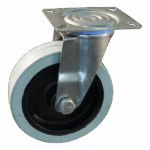Rvs bokwiel, 80mm diameter, elastisch rubber loopvlak, kogellager, 108mm bouwhoogte
