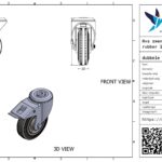 Rvs zwenkwiel, 100mm diameter, rubber loopvlak, rollager RVS, dubbele rem, naloop