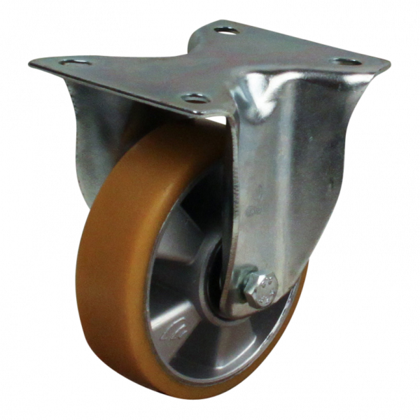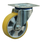 Stalen bokwiel, 100mm diameter, PU loopvlak, kogellager, 128mm bouwhoogte