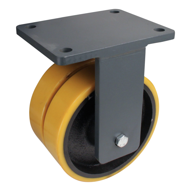 Stalen bokwiel, 150mm diameter, PU loopvlak, kogellager, 215mm bouwhoogte