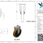 Stalen bokwiel, 250mm diameter, PU loopvlak, kogellager, 299mm bouwhoogte