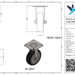 Stalen bokwiel, 75mm diameter, TPE loopvlak, kogellager, 98.5mm bouwhoogte