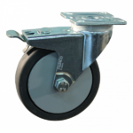 Dit is een stalen zwenkwiel. Deze kan worden bevestigd door middel van een plaat. Het wiel heeft een bouwhoogte van 121 millimeter. Het materiaal van de velg is PP (RAL 7004 signaalgrijs van kleur) en van het loopvlak TPE (kleur RAL 7024 grafietgrijs). Het wiel heeft een diameter van 100 millimeter en een breedte van 24 millimeter. Het wiel heeft een draagvermogen van 70 kilogram. Het wiel is gelagerd met een kogellager. Merk: Steinco.