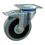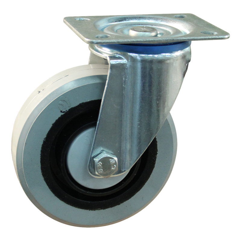 Dit zwenkwiel heeft een gaffel van staal. De bevestiging is van het type plaat. De bouwhoogte is 156 millimeter. De velg is gemaakt van PA (kleur RAL 9005 gitzwart) en het loopvlak is van elastisch rubber (RAL 7001 zilvergrijs). Het wiel heeft een diameter van 125 millimeter en een breedte van 36 millimeter. De draagkracht is 200 kilo. Het wiel is gelagerd met een kogellager.