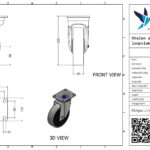Dit is een zwenkwiel met een gaffel van staal. Het zwenkwiel wordt bevestigd met een plaat. De bouwhoogte is 235 mm. De velg is gemaakt van gietijzer (RAL 9005 gitzwart van kleur) en het loopvlak is van PU (RAL 1005 honinggeel van kleur). Het wiel heeft een diameter van 180 mm en een breedte van 50 mm. De draagkracht is 800 kg. De lagering bestaat uit een kogellager.