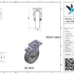 Stalen zwenkwiel, 200mm diameter, PU loopvlak, glijlager, dubbele rem, naloop