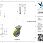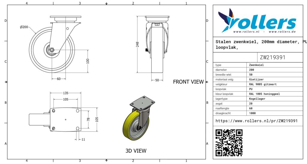 Stalen zwenkwiel, 200mm diameter, PU loopvlak, kogellager
