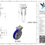 Stalen zwenkwiel, 250mm diameter, PU loopvlak, kogellager, wielrem