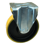 Dit zwenkwiel heeft een gaffel van staal. Deze kan worden bevestigd door middel van een plaat. De bouwhoogte is 300 mm. Het materiaal van de velg is gietijzer (RAL 9005 gitzwart van kleur) en van het loopvlak PU (RAL 1005 honinggeel). Het wiel heeft een diameter van 250 mm en een breedte van 50 mm. Het draagvermogen is 800 kg. De lagering bestaat uit een kogellager.