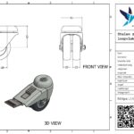 Stalen zwenkwiel, 75mm diameter, TPE loopvlak, kogellager, dubbele rem, naloop